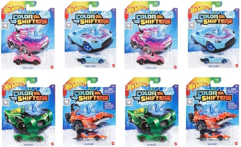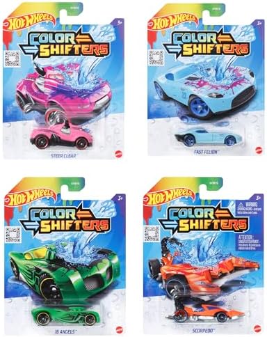 Product Description Hot Wheels Color Shifters vehicles rev up the fun of sensory play with cars that change color when dipped in water! When kids dunk or splash their 1:64 scale Color Shifters vehicle with icy cold or very warm water, it instantly changes color. Change the water temperature and the deco changes back. It's like having two cars in one hit the road, race the track and then change color and race again. Each sold separately, subject to availability. Key Features: Get 2 cars in 1 with a Hot Wheels Color Shifters vehicle that changes color with water!,Simply dunk the vehicle into icy cold water to completely change the color; change it back with very warm water repeat over and over!,Each vehicle is 1:64 scale with authentic styling and cool design details.,Race on the track then dip the car in icy cold or very warm water to change the decos Race again as a different-looking car!,Hot Wheels Color Shifters make a great gift for kids ages 3 years old and up they'll want to collect them all (each sold separately). This product is designed with premium quality, ensuring durability and superior performance.