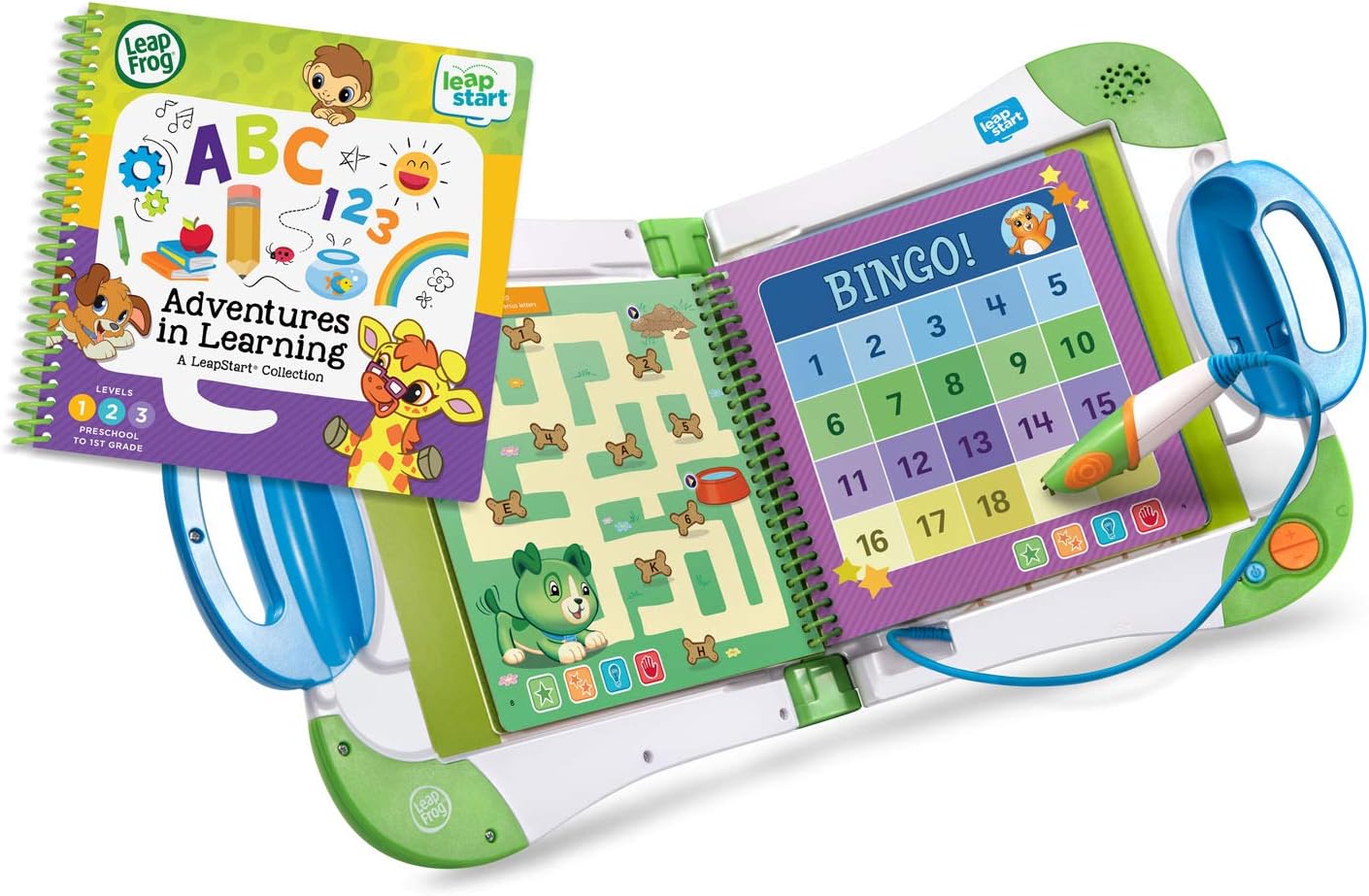 LeapFrog LeapStart Preschool Success " Interactive Learning System in Green "Interactive Learning Made Fun for Preschoolers!" Engaging Audio-Visual Learning: Combines books and interactive audio to reinforce key concepts, helping kids better understand and retain lessons. Comes with Two Activity Books: Includes Scout and Friends Math With Problem-Solving plus an additional activity book for expanded learning opportunities. Hands-On Exploration: The LeapStart stylus allows kids to tap pictures and words, unlocking activities that teach reading, counting, problem-solving, and more. Progressive Skill Levels: Features replayable activities with two levels and over 50 essential skills per grade level, spanning preschool to first-grade topics. Kid-Friendly Design: Built for children ages 2-7 years, this system ensures safe, engaging play. Requires 2 AA batteries (included). Computer and internet needed for content download. Encourage early learning and build confidence with this all-in-one interactive system!