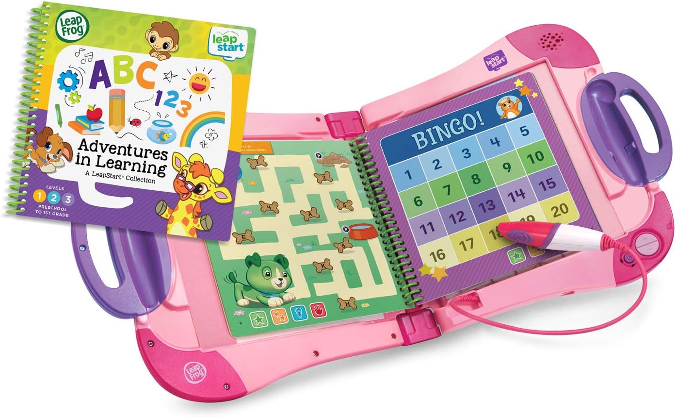 LeapFrog LeapStart Preschool Success " Interactive Learning System (Pink) The LeapFrog LeapStart Preschool Success is an interactive learning system that engages kids through books and audio, reinforcing key concepts in reading, math, and problem-solving. Designed to grow with your child, this system offers touch-and-talk activities, puzzles, and creative challenges to make learning fun. Features: Interactive Learning " Tap the stylus on pictures and words to explore reading, counting, and problem-solving. Includes 2 Activity Books " Comes with Scout and Friends Math With Problem-Solving and an additional book. Expansive Library " Works with LeapStart books (sold separately) covering preschool to first-grade subjects. Replayable & Adjustable " Activities offer two levels and 50+ key skills per grade level. Ergonomic Stylus " Designed for little hands to promote a proper writing grip. Age: 2-7 yearsPower: Requires 2 AA batteries (included)Setup: Computer and internet required for additional book downloads A fun, interactive way to build essential skills and spark a love for learning!