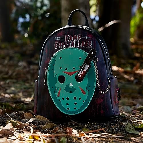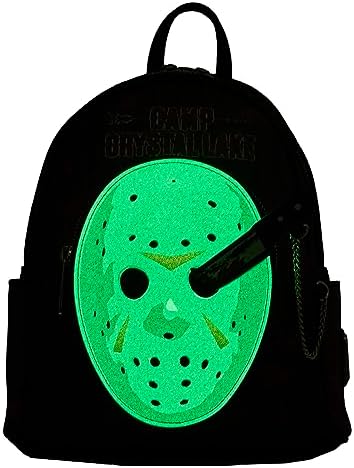 Product Description From the horror movie Friday the 13th, this mini backpack features Jason's Mask! Featuring incredible detail to bring Jason's Mask to life, this Loungefly mini backpack is made of vegan leather (polyurethane), has a front zipper compartment, side pockets, and adjustable back straps. Inside, the backpack continues the theme with unique, coordinating lining. Key Features: Featuring incredible detail to bring Jason's Mask to life, this Loungefly mini backpack is made of vegan leather (polyurethane), has a front zipper compartment, side pockets, and adjustable back straps; Inside, the backpack continues the theme with unique, coordinating lining; The mask on the mini-backpack glows in the dark, adding that extra scary touch!,Featuring incredible detail to bring Jason's Mask to life, this Loungefly mini backpack is made of vegan leather (polyurethane), has a front zipper compartment, side pockets, and adjustable back straps; Inside, the backpack continues the theme with unique, coordinating lining,PERFECT GIFT IDE - Ideal for birthdays, ValentineaTMs, Christmas, for a mother, mum, wife, girlfriend or others; Specially crafted for ladies and gentlemen who value style and function,EXCLUSIVE AMAZON FIND - Unique design that's available only on Amazon; Stand out in any crowd with a backpack that's as unique as you This product is designed with premium quality, ensuring durability and superior performance.