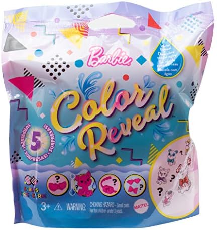 Product Description OverviewBarbie Color Reveala pets deliver an unboxing experience full of surprises -- five of them! The mini case, shaped like sunglasses, holds three mystery bags hiding a Color Reveala pet figure and three surprise items! Dip the mystery pet covered in Color Reveala teal into water. Key Features: The Barbie Colour Reveal animals delight with 5 surprises in just one packaging,Each animal set is in a specific colour and comes in an easy to open and close container in the shape of sunglasses Which is hidden inside? The pleasure begins with opening the container in which there are 3 bags of unknown contents.,In these bags, children discover a Colour Reveal animal, a belt bag and sunglasses for Barbie (sold separately) as well as a bow for the animal,To unravel the mystery, dip the animal figure in warm water and turn back and forth until the water turns a turquoise hue.,Now can the animal be removed which it is? Each looks different and is colour coordinated with the other parts of the set. This product is designed with premium quality, ensuring durability and superior performance.