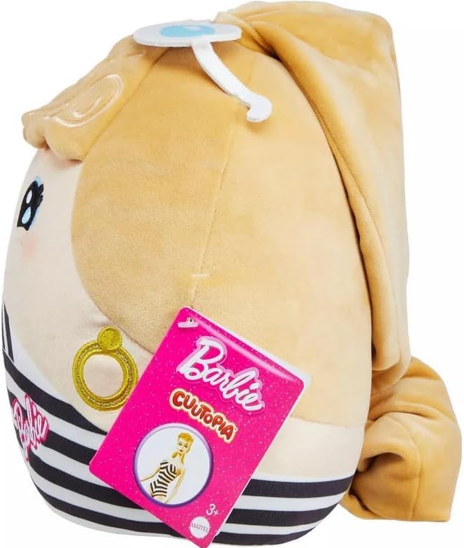 Product Description Barbie Cuutopia rounded plush figures allow fans of the iconic fashion doll to get up close and huggable for snuggles or storytelling! Each doll stands 10 inches tall in an outfit inspired by a fan-favorite signature look with textured details, like felt bows or sunglasses and long ponytails. Designed with a rounded form and tactile fabrics, the soft toys are extra squishy and fun to play with. Fans can pick a favorite or can collect them all -Cuutopia Barbie plushies make a great gift for kids and collectors 3 years old and up. Key Features: Snuggly and stylish, Barbie doll fans can cuddle and storytell with Barbie Cuutopia plush toys!,Each rounded pillow figure is super soft with signature style -the line features the most popular looks from the decades!,Textured elements add to the cuddliness and play -accents like felt bows or sunglasses and an extra-soft, extra-thick ponytail are so fun to touch!,At 10 inches tall with embroidered face details, these Barbie plushies can be used to play out stories, explore self-expression and cuddle up for naps!,Barbie Cuutopia plush figures makes a great gift for kids and collectors ages 3 years old and up (each sold separately, subject to availability) This product is designed with premium quality, ensuring durability and superior performance.