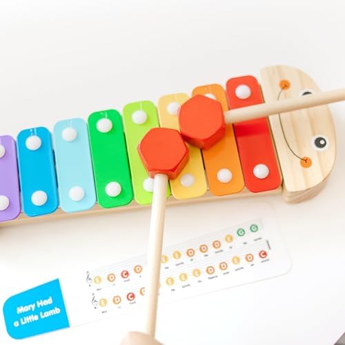 Product Description Product Description This colorful xylophone is a child's ideal first introduction to music! Mallets in hand, children can explore simple music concepts through creative play, becoming familiar with an octave, intervals, and rhythms. Over time, this little caterpillar will help children develop an appreciation for sound and music! The nifty wooden mallets store neatly in the xylophone itself to look like the caterpillar's antennas. Key Features: Rainbow-colored xylophone,Includes an octave of notes,Self-storing wooden mallets become the caterpillaraTMs antennas,Helps children explore simple musical concepts; great for creative play, artistic expression, and fine motor skills,Makes a great gift for preschoolers, ages 3 to 6, for hands-on, screen-free play This product is designed with premium quality, ensuring durability and superior performance.