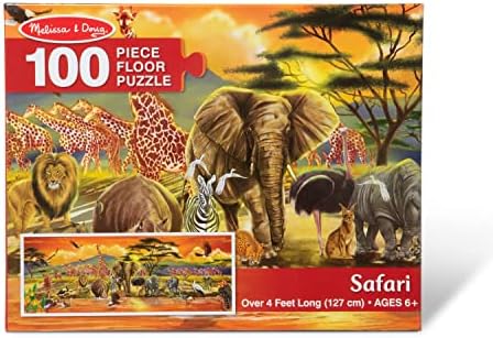 Product Description Product Description The jumbo Safari Floor Puzzle features beautiful original artwork that depicts a scene from the African plains. Kids can learn about different kinds of animals that make the savannah their home, as well as recognize some of their favorites including giraffes, an elephant, and a zebra. The large floor puzzle measures over four feet long when it's assembled, and the 100 extra-thick cardboard pieces feature an easy-to-clean surface to keep it looking like new. Key Features: Fit together 100 extra-thick cardboard jigsaw pieces to create a dramatic African safari scene,Easy-Clean surface keeps puzzle looking new,Promotes hand-eye coordination and problem-solving skills,Stunning, detailed artwork; over 4 feet long when complete,Makes a great gift for 6- to 8-year-olds, for hands-on, screen-free play This product is designed with premium quality, ensuring durability and superior performance.