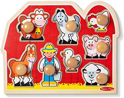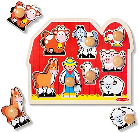 Product Description Product Description The Melissa & Doug Deluxe Jumbo Knob Puzzle features farm friends that are brightly colored and feature bold outlines. Each puzzle piece is constructed of extra thick, durable wood, and features a jumbo wooden knob so little ones can easily grasp each shape. The eight-piece puzzle includes a chicken, pig, sheep, duck, goat, cow, horse, and a happy farmer. Each piece has a full-color matching picture underneath it to help kids recognize the item. Key Features: Extra-thick wooden puzzle features jumbo wooden knobs for easy grasping,Colorful farm artwork,Bright colors and sweet illustrations of familiar objects,Full-color, matching pictures appear underneath each piece,Makes a great gift for infant and toddler girls and boys, ages 12 months to 2 years, for hands-on, screen-free play This product is designed with premium quality, ensuring durability and superior performance.