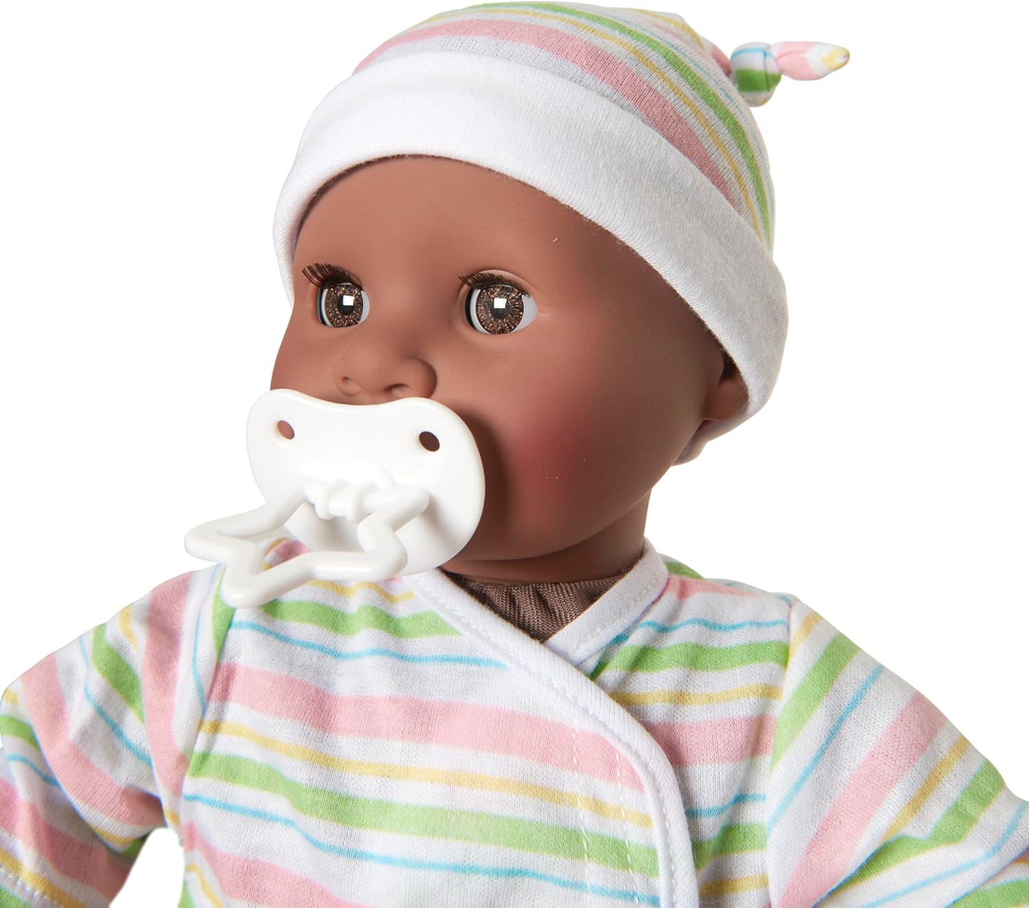 Melissa & Doug Mine to Love Fashion Doll Clothes " 6-Piece Mix & Match Set 6 Coordinated Pieces: This set includes a puff-sleeved t-shirt, a dress with scalloped sleeves, soft polka-dot leggings, flower-patterned tie-up shorts, a cardigan with a top bow, and a polka-dot adjustable headband. Perfect for dressing dolls sized 12" to 18" (dolls not included). Mix & Match Fun: Encourage creativity as kids can mix and match the pieces to create stylish outfits for their dolls. Machine Washable & Durable: Made with sturdy construction and quality fabric, these clothes are machine washable and designed to last. Storage & Organization: The clothes come with two durable hangers for easy storage and organization. Encourages Empathy & Role Play: Helps kids explore grown-up roles and responsibilities while fostering empathy and self-expression. Great Gift for Ages 3 & Up: A fantastic gift for children who love doll play and fashion, making it a perfect addition to their toy collection. Ideal for nurturing creativity, this fashion set is a great way for kids to explore fashion and role play!