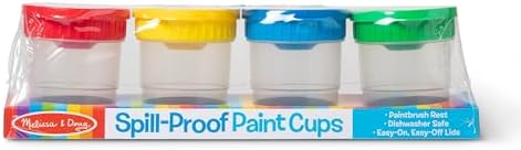 Product Description Product Description Set of four dishwasher-safe cups feature brush holders and snap-on storage lids For more than 30 years, Melissa & Doug has created beautifully designed imagination- and creativity-sparking products that NBC News called athe gold standard in early childhood play.a We design every toy to the highest quality standards, and to nurture minds and hearts. If your child is not inspired, give us a call and we'll make it right. Key Features: Pour paint in and keep it fresh for the next art session,Lids snap on tightly for an air-tight seal,Colorful lids help identify paint contents,Dishwasher safe,Fits in Deluxe Standing Easel This product is designed with premium quality, ensuring durability and superior performance.