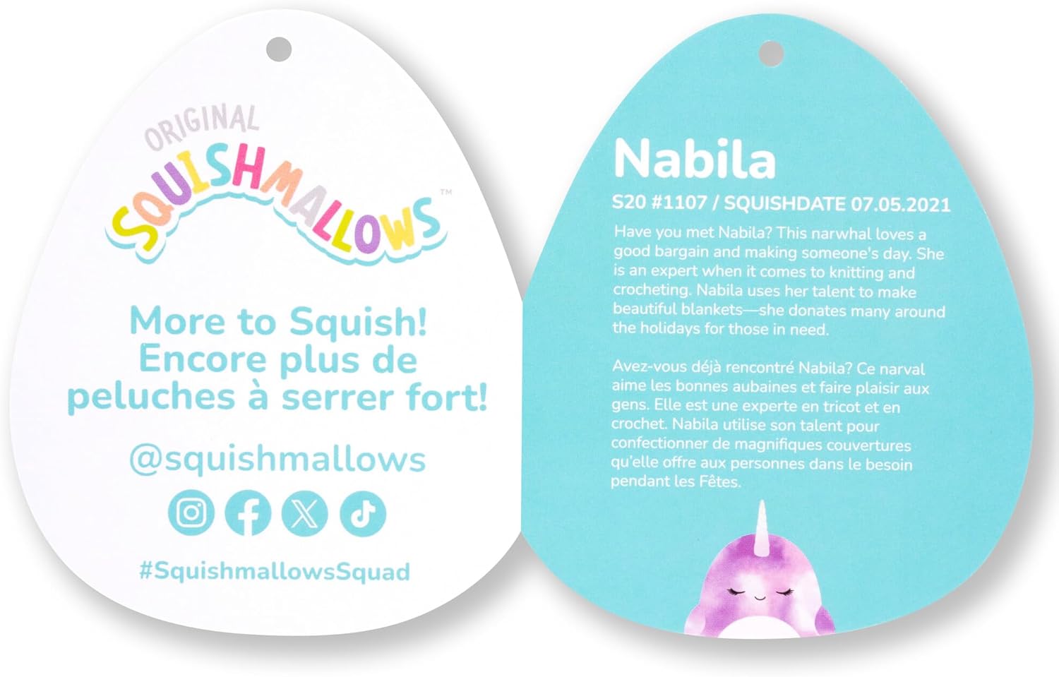 Squishmallows 20-Inch Nabila Purple Tie-Dye Narwhal A" Jumbo Plush Meet Nabila: A generous narwhal who loves making someone's day with her beautiful knitted and crocheted blankets, which she donates during the holidays. Ultra-Soft & Jumbo Size: Made with high-quality materials, this 20-inch plush is perfect for cuddling and comforting. Squish & Squeeze: A perfect companion for relaxing, traveling, or simply adding a soft touch to your collection. Authentic Squishmallows: Ensure you're getting the real deal with the official Squishmallows seal. Collect Them All: Join the Squishmallows Squad and discover other collections like FuzzAMallows, HugMees, and Stackables! Nabila, with her heart of gold and colorful tie-dye design, is a must-have addition to your Squishmallows Squad! Ready to snuggle up with this sweet and caring narwhal?