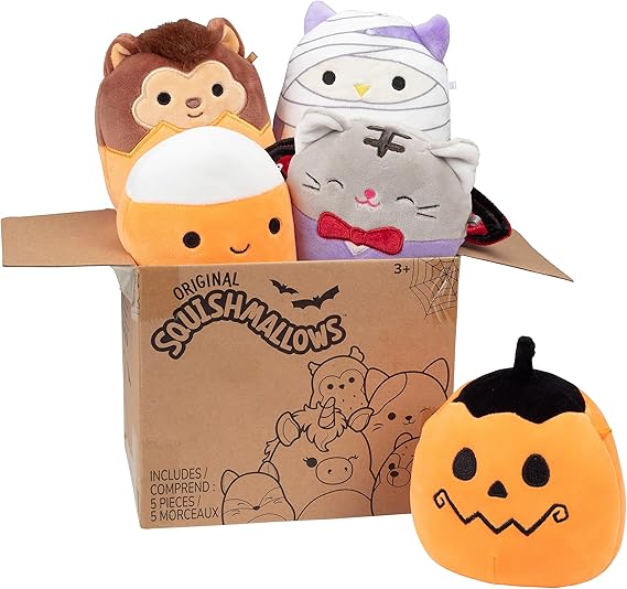 Squishmallows 5-Inch Plush 5-Pack " Soft, Squishy, Cuddly Fun!Squeeze, cuddle, repeat! This Squishmallows 5-Pack is the ultimate cuddle collection featuring super-soft, squishy plush toys in adorable spooky designs. Perfect for snuggling, collecting, or gifting, these 5" plush friends come in a cute, exclusive Squishmallow box! Includes: Paige the Pumpkin, Cannon the Candy Corn, Tally the Cat Perfect for: Sleepovers, road trips, or cozy companionship Great gift for: Birthdays, holidays, and special occasions Whether you're adding to your collection or giving the gift of snuggles, these collectible plush toys are a must-have for all ages! Officially licensed Squishmallows | Polyester | 5" each | Set of 5