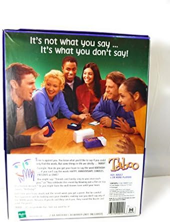Product Description Product Description The game of unspeakable fun, Taboo 2001 lets you get as creative as you want. Think fast and talk fast to get your team to guess the secret word in 60 seconds or less. But choose your clues carefully, because if you utter any of the 5 Taboo words, you'll be buzzed and lose your turn. This 10th anniversary edition features more than 1,000 new words to guess. For 4 or more players. Made in US. Amazon.com It sounds so simple: get your team to name common words without voicing a few choice descriptors. Key Features: 4 or more players.,Ages: Adult This product is designed with premium quality, ensuring durability and superior performance.