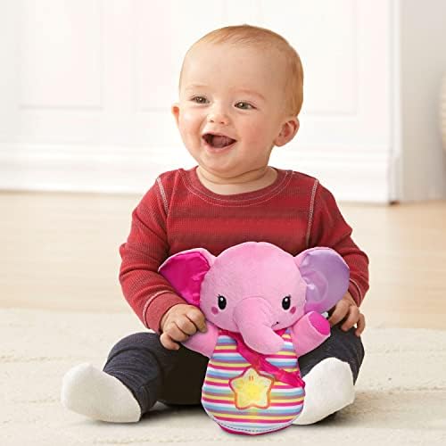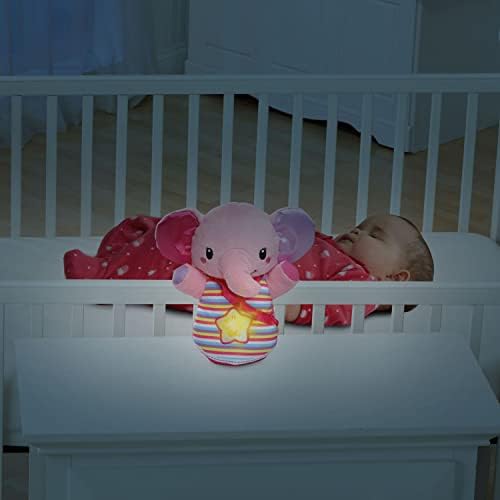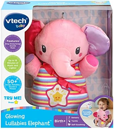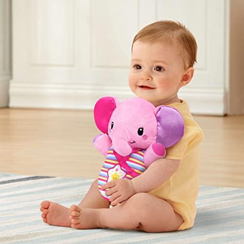 Product Description Cuddle up with the Glowing Lullabies Elephanta, a lovable plush toy featuring a soft, glowing tummy with color-changing lights. This cute companion will help soothe your baby if they get fussy. Press its tummy to hear soothing lullabies, loving phrases and relaxing sounds. Listen to the peaceful white noise of a gentle rainfall, birds and heartbeat to block out distracting noises for a relaxing environment. This cuddly elephant also calms little ones with 15 minutes of familiar melodies. Key Features: This pink cuddly elephant toy has a soft glowing tummy with lights that slowly fade in and out and change colors with sounds and music,Press the tummy button and the elephant will play soothing sounds and lullabies, loving phrases and relaxing sounds,Peaceful nature sounds and a beating heart provide a calming and soothing environment for baby,Features 30 familiar melodies that play for 15 minutes to help calm baby during fussy times,Electronics are removable so it can be hand washed Baby plush requires 2 AA batteries (batteries included for demo purposes only, new batteries recommended for regular use); recommended for babies from birth and up This product is designed with premium quality, ensuring durability and superior performance.