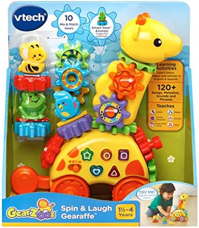 Product Description Shift learning into high gear during play time with the Super fun gearooz move & laugh gearaffe by VTech. Your little engineer can twist, turn and create their own unique gearaffe using any combination of the 10 included gears. Let your child's imagination roam when they place the animal gears on the smart pole to hear fun phrases and learn about animals. Press the buttons to introduce colors, shapes and beginner Spanish. Key Features: Mix and match gears on the Giraffes to strengthen fine motor skills and enhance imaginative play time,Switching gears and watching how different combinations work together encourages problem solving,Place the animal gears on the Smart pole to hear fun phrases and learn about animals,Press the buttons to learn shapes and colors in both English and Spanish This product is designed with premium quality, ensuring durability and superior performance.