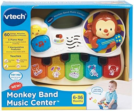 Product Description Product Description Join the animal band and sing along with the Monkey Band Music Center by VTech. Your little one will develop fine motor skills as they play on light-up piano keys or tap the drum. Animal friends introduce themselves, sing songs and teach instrument names on this fun music toy. It's time to sing and play. Your little one is in the band. The adorable monkey encourages interaction with 2 sing-along songs and 10 playful melodies that keep the learning beat going. It's time to sing and play. Key Features: Innovative and educational,Great fun for children, toddlers, and infants,Designed to be safe and durable,Twist the monkey to hear 2 sing-along songs and 10 melodies,Tap the drum to hear drum sounds and music,Twist the monkey to hear 2 sing-along songs and 10 melodies,Tap the drum to hear drum sounds and music,Five animal friends introduce music, instrument sounds and animals,Flashing lights and playful music draw your baby's attention; Adorable monkey and keyboard animals encourage interaction,Flashing piano keys provide visual stimulation; Instrument sounds provide auditory stimulation This product is designed with premium quality, ensuring durability and superior performance.