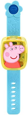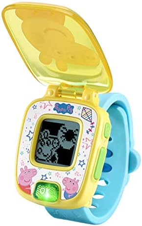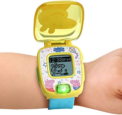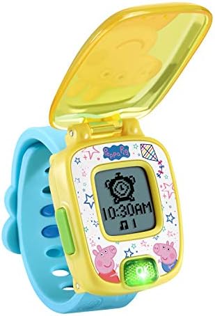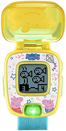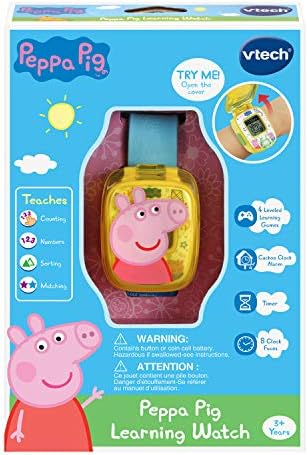 Product Description It's time for number games and more with the Peppa Pig Learning Watch! Peppa Pig makes the learning come alive with a wristwatch that entertains with Peppa Pig's voice saying her favorite phrases. Eight choices of Peppa Pig clock faces make telling time extra interesting. Little ones explore time concepts and build early habits with a cuckoo alarm, timer and stopwatch. Make "five minutes until dinner" something the kids can measure! This interactive watch includes four engaging leveled-learning games that teach young ones how to count, choose the smaller or greater number, sort and match. Key Features: Peppa Pig brings personality to math activities with eight Peppa clock faces; hear Peppa's favorite phrases as you open and close the protective lid,Four leveled-learning games teach children how to count, compare, sort and match with basketball, fish, fruits, vegetables, and a shadow-matching game,Explore time concepts and build early habits with a cuckoo alarm clock, timer and stopwatch,From early counting skills to comparison concepts, this watch grows along with your child and keeps age-appropriate learning right at hand,Intended for ages 3-6 years Requires one CR2450 lithium battery Battery included for demo purposes only New battery recommended for regular use This product is designed with premium quality, ensuring durability and superior performance.